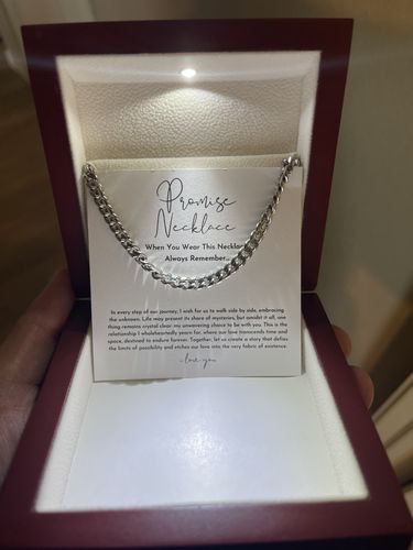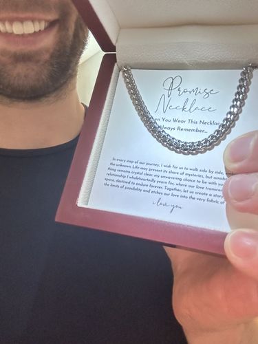 Show him how much he means to you with this beautifully crafted promise necklace. Designed to last, waterproof and tarnish free, it’s more than just jewelry, it’s a daily reminder of your love and commitment. Perfectly packaged and ready to gift, it turns any occasion into a moment he’ll cherish forever.
